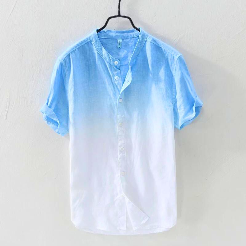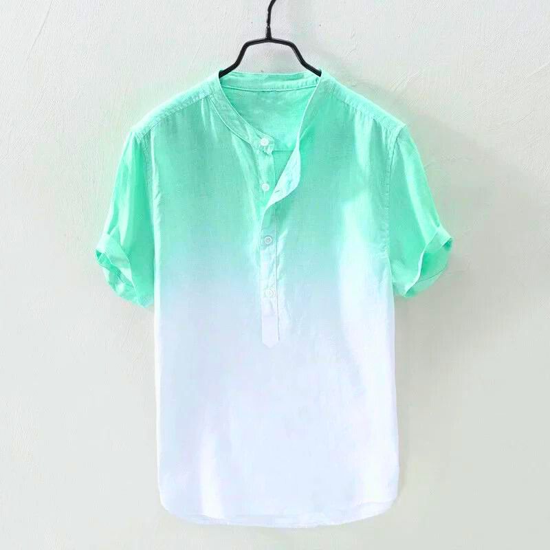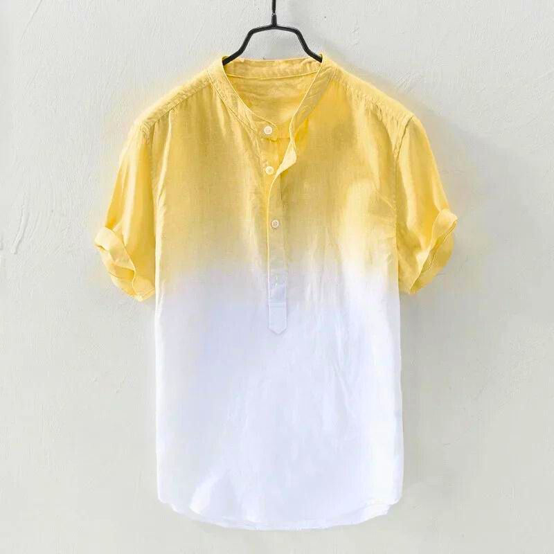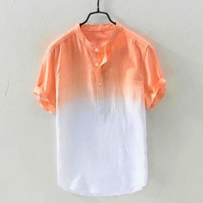 Seamless transition from vibrant hues to crisp white, this shirt is made from 100% organic linen, perfect for a stylish yet casual look.