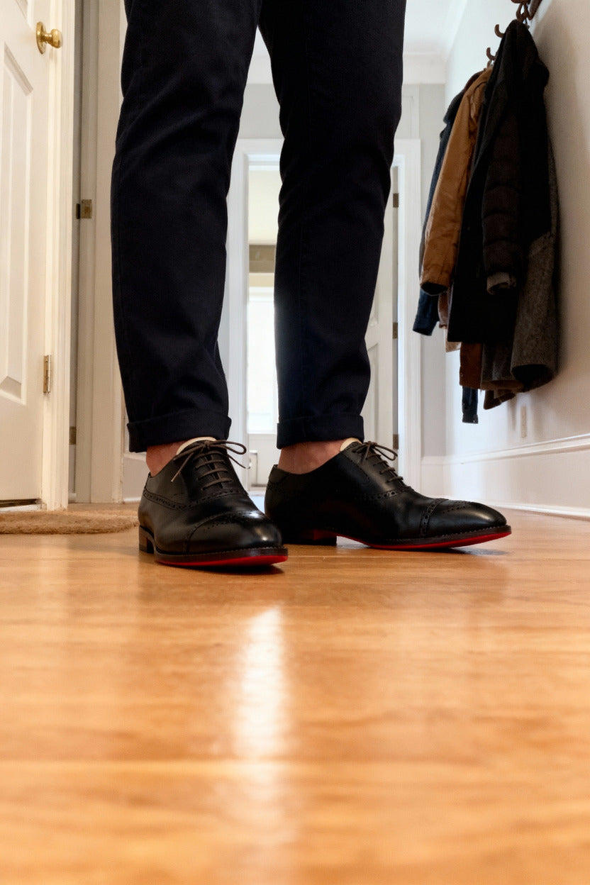 The Oxford Royal Brogue features a genuine leather upper hand-selected for softness and durability, leather lining for breathability, a fully cushioned insole for all-day comfort, and our signature red leather sole.