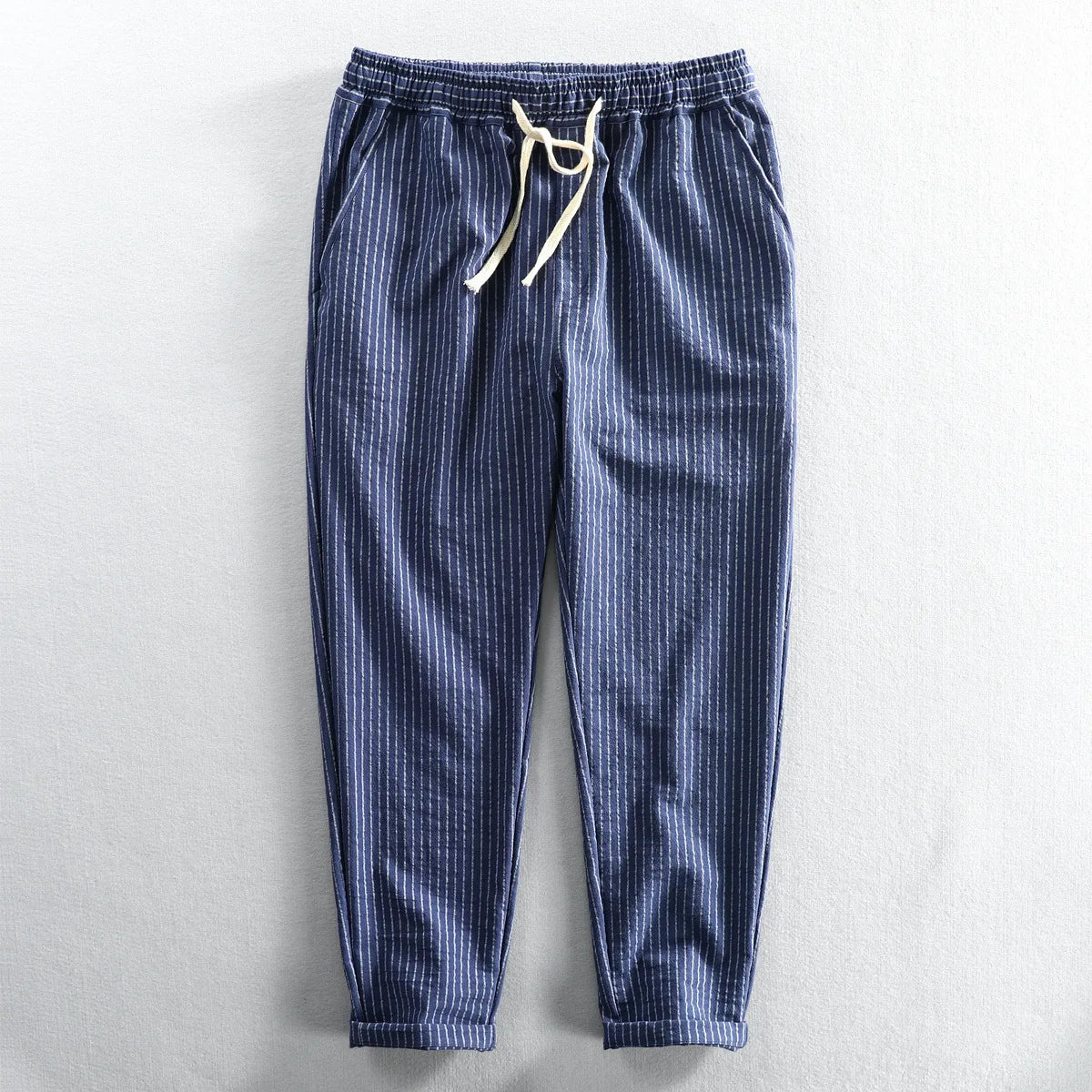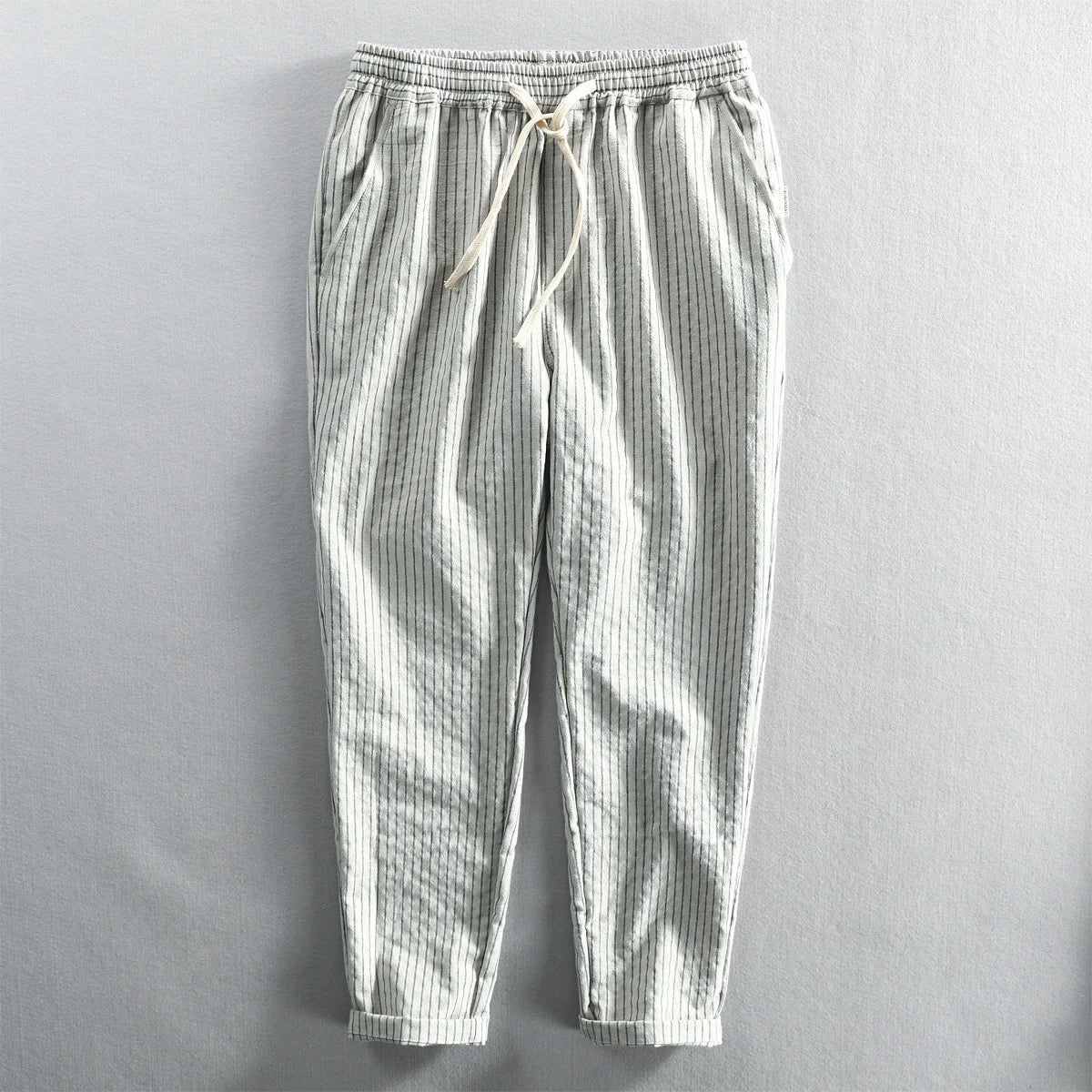 Soft, lightweight linen and classic pinstripes give these pants a relaxed coastal vibe. With a drawstring waist and tapered legs, they're perfect for sunny strolls, casual outings, or lounging.